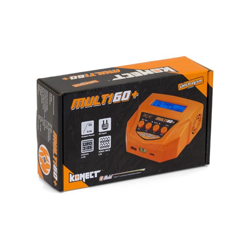 Le chargeur Multi 60 est un chargeur multifonction qui peut charger différents types de batteries (Lipo, Lion, Life, Nimh, Nicd et Pb). Sa puissance de charge de 60W permet de charger les accus jusqu'à 6A avec une sécurité optimale. La prise pour le cordon de charge est une prise XT60. Le chargeur est livré avec un cable de charge pour les prises Dean et Tamiya.